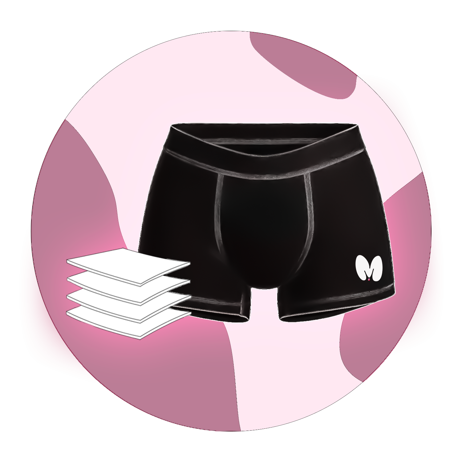 Le boxer offre une couverture et une absorption étendue, tout en restant confortable (éviter les frottements sur les cuisses) et esthétique. Il permet aussi d’intégrer notre poche ventrale discrète.